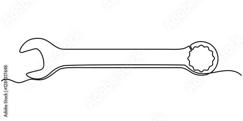 Continuous line drawing of wrench. Single line drawing of a wrench. Line art wrench. Vector illustration.