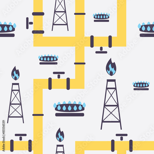 Set of natural gas line icons. Simple symbols with gas pipeline, cast iron burners, fuel tanks and gas station. Editable stroke. Outline vector illustration collection