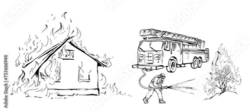 Hand drawn vector of Wuhan corona virus, covid-19. Man in the suit fires the gun and has corona virus instead of bullet.