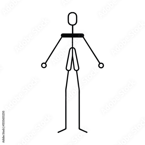 Illustration of a man controlling a puppet with strings attached to its limbs and head, black outline