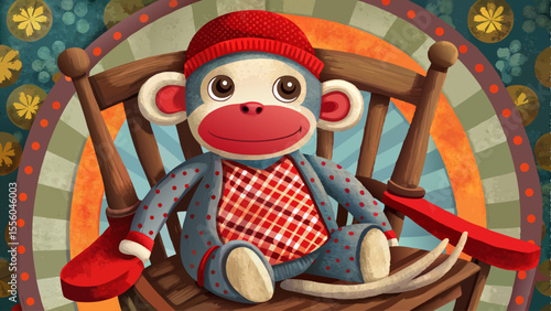 A robotic monkey with glowing sensors and mechanical limbs stands on a tree root.