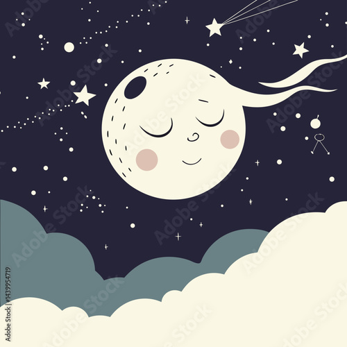 Moon and star patterned design featuring clouds and dreaming elements in soothing colors