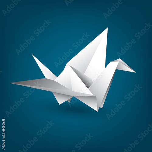 Origami paper crane bird. Geometric line shape for art of folded paper. Japanese origami. Vector illustration.