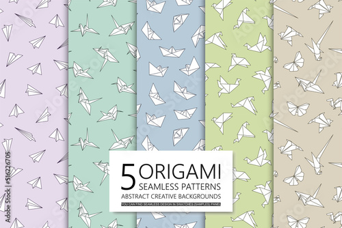Set of origami crane vector outline, silhouette and dashed illustration icon isolated on white background. Japanese traditional origami crane for infographic, website or app.