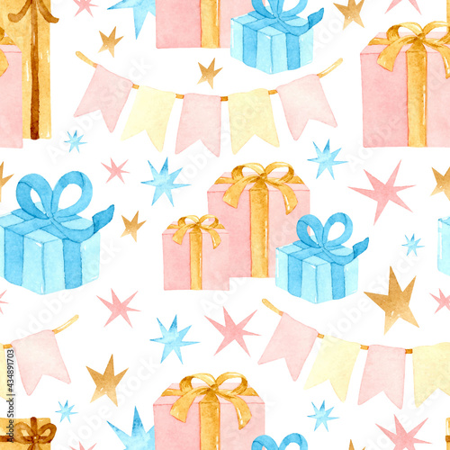 triangle pennants chain and confetti decoration for holiday party color concept. birthday, celebration, carnival and anniversary