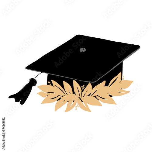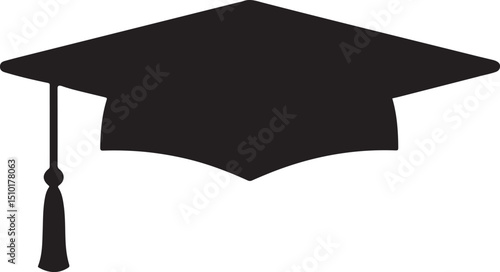 Silhouette of graduation cap or education hat on transparent background, Graduation hat icon, mortarboard cap symbol