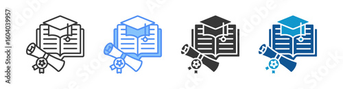 Graduation cap, diploma, and tassel icons represent academic success and educational achievement for college and university students
