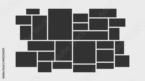 Empty Grid Collage Photo Frame Template. Square and Rectangle Background Shape. Mosaic and Texture Pattern Mood board for Portfolio and Wall Gallery Presentation.