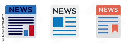 Colorful Breaking News Newspaper Vector Icon Set for Media Design Projects