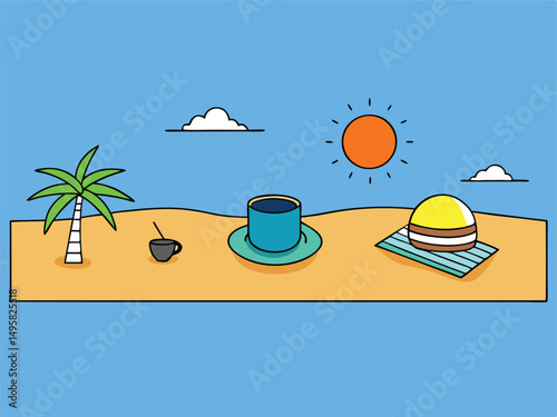 Illustration of Flat Design with Sunflowers Whisk and Mesh Skimmer
