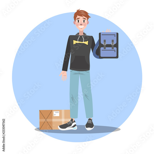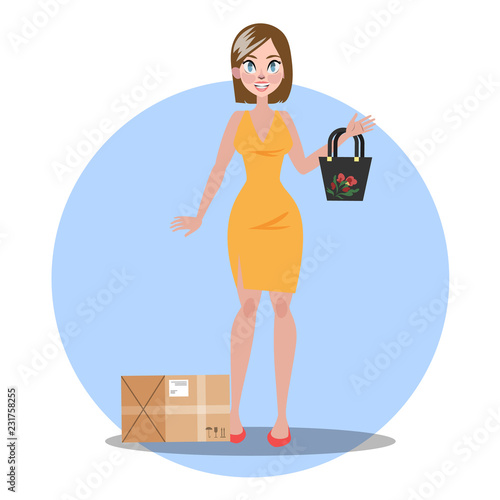 Vector illustration of online shop owner prepares to send ordered goods. Entrepreneur small business, online shop concept.