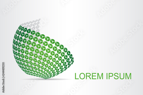 Abstract technology logo stylized spherical surface with abstract shapes.