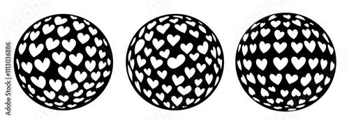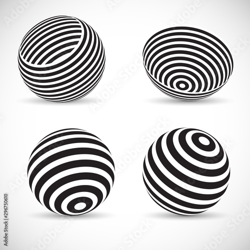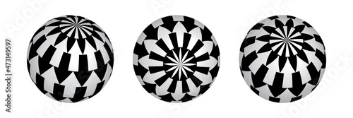 Abstract black and white geometric designs with circular and spherical graphic elements