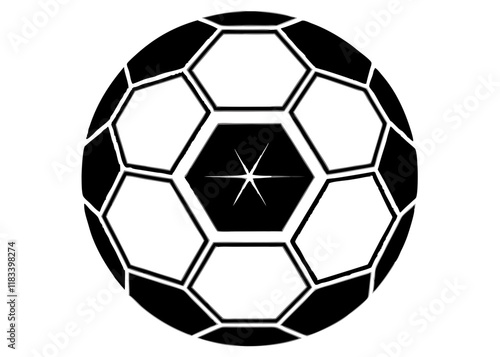 soccer ball, simple black and white illustration, geometric pattern, hexagons and pentagons, iconic sports equipment, minimalist design, clean lines, spherical shape, classic football, vector graphic