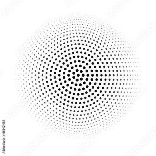 Abstract circular pattern of dots creating a sphere effect with depth and dimension white background
