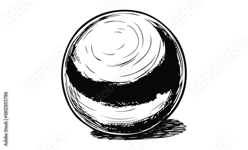 Hand-drawn spherical object with bold black and white shading. Vector retro hand drawn illustration.