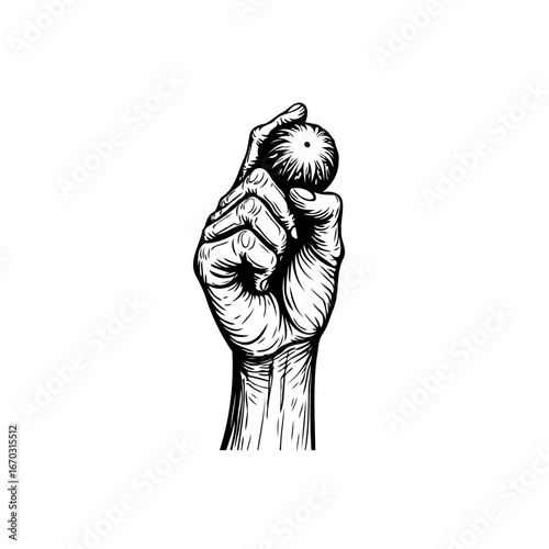 Detailed hand holding spherical object illustration displays a firm grip conveying strength and