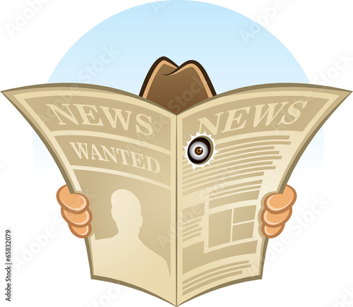 Illustration Vector Man In Hat With Newspaper Spies