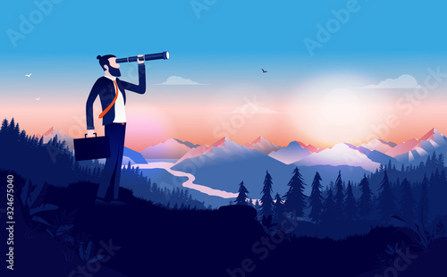 Businessman spying on idea