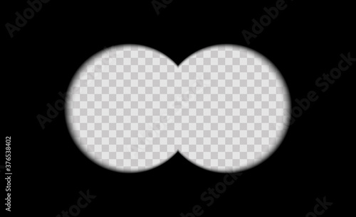 Binoculars sight view. POV lens frame with crosshair for spy, military, or hunting optics. Transparent vector overlay