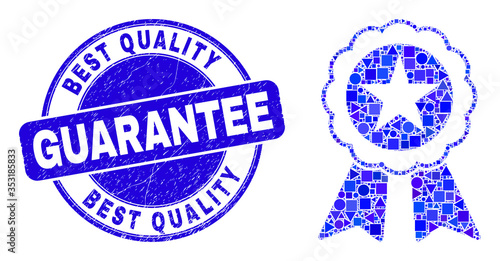 Geometric star seal mosaic icon and Best Quality Guarantee stamp. Blue vector rounded distress stamp with Best Quality Guarantee title. Abstract mosaic of star seal done of round, tringle,