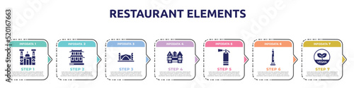 restaurant elements concept infographic design template. included cathedral of morelia, hall of supreme harmony, stari most, holstentor, extinguishing, walled obelisk, vegetarian icons and 7 option