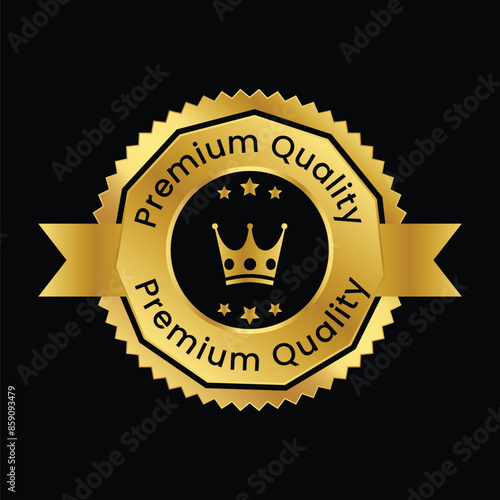 vector premium quality label with gold ribbon on black background