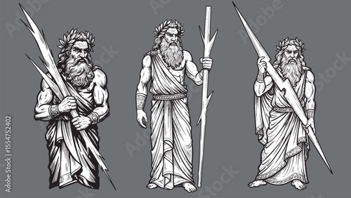 Zeus engraving artwork with thunderbolt showcasing divine power authority and classical mythology symbolism