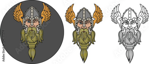 supreme deity of Scandinavian mythology Odin in a winged helmet