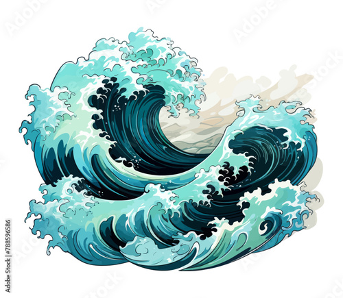 Ocean wave art illustration digital artwork sea waves design graphic vibrant colors tidal wave drawing style