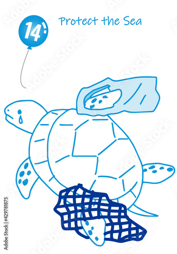 SDGs ゴール14イメージのの水彩吹き出しセット