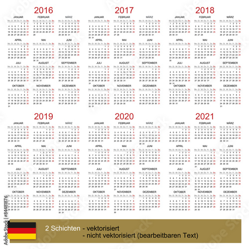 Calendar 2016 2017 2018 2019 2020