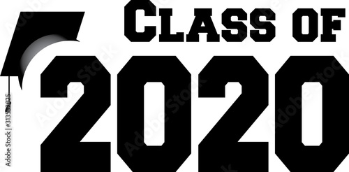 2020 Graduation with Cap Vector. Class of 2020 Year Graduation Banner. Banner for Graduation Greeting Card. Lettering Class of 2020 for Greeting and Invitation Card.