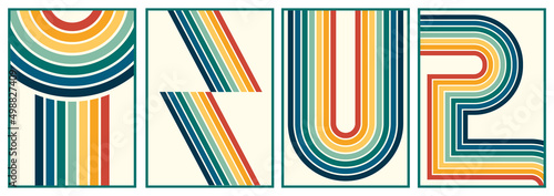 Retro 70s style stripes poster collection. shapes vector design graphic 1970s retro background. abstract stylish 70s era line frame illustration
