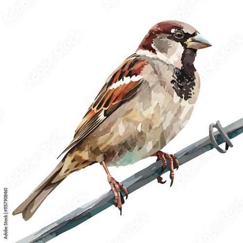 Songbird on twig engraving resting pose illustration