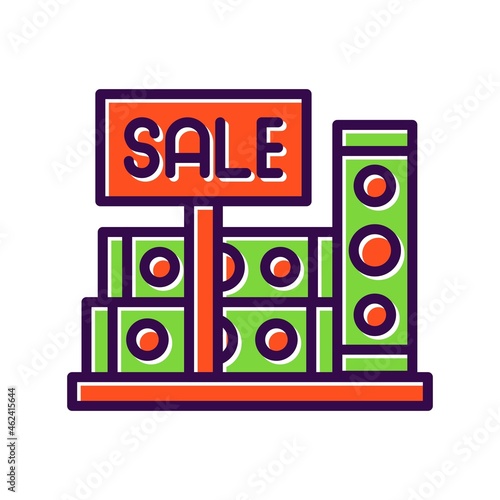 Bookshelf with books, decorative house, potted plant. Bookstore, bookshop, book lover concept. A4 vector illustration for poster, banner, advertising, flyer.