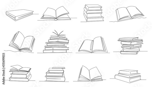 Book line icons set. Open brochure, magazine, literature, dictionary, audiobook, learning, encyclopedia education, information reference vector illustration. Outline sign for library. Editable Stroke