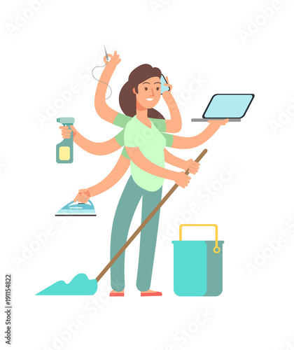 Multitasking housewife with many hands vector isolated