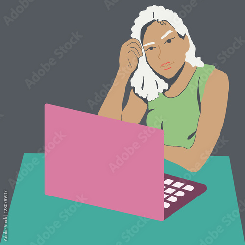 Female freelancer works with laptop.