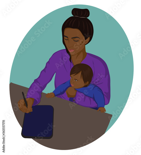 mom mother work in home with a baby illustration