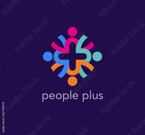 Health plus and intertwining Heart family logo. Unique color transitions. people logo template. vector