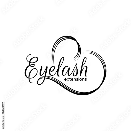 Eyelash extension logo. The lettering and stylized heart. Vector illustration in a modern style