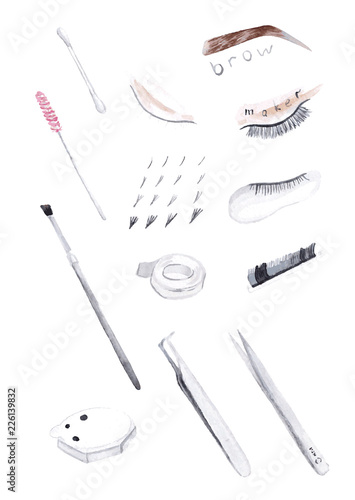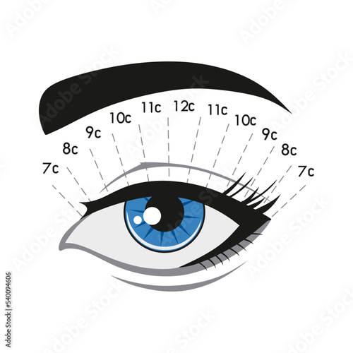 Fashion illustration. Vector illustration of lashes and brows. Logo extensions, lamination of eyelashes. For beauty salon, lash extensions maker, brow master.