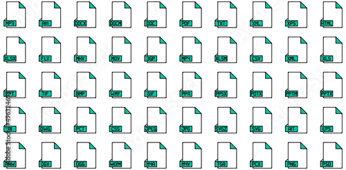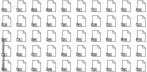 Set of file formats icons. File type icons. Format of documents and files extension for ui. Vector illustration.