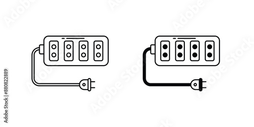 Set line Electric extension cord icon isolated on black and white, transparent background. Power plug socket. Vector