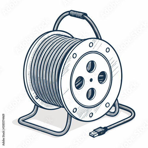Create a bold, vector illustration of an extension cord, featuring thick black strokes and sharp details.  Emphasis on realistic representation.