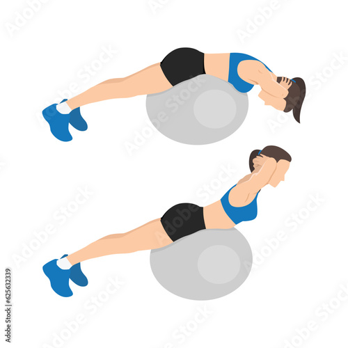 Woman doing stability or swiss ball back extensions exercise. Flat vector illustration isolated on white background