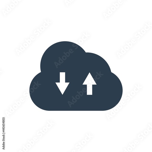 Laptop with cloud storage. Exchange of information. Cloud data storage uploading file on server. Cloud computing technology. Hosting, network management, data synchronization, database, remote access