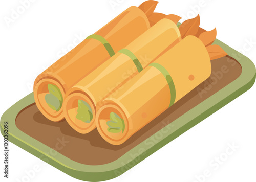 Enchilada vector with meat and rolled tortilla for logo or emblem. Mexico enchilada latin food. Traditional mexican food for poster or banner