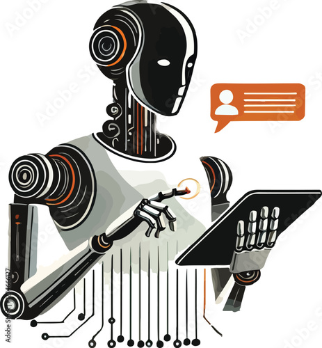 Minimalist vector illustration of a humanoid robot silhouette, ideal for sci-fi designs, technology themes, and futuristic concepts.